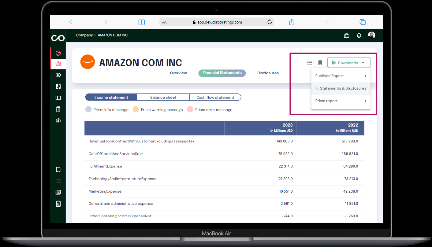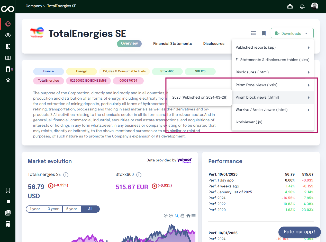 - [New] Introduced new extractions from PRISM, including Block viewer and Arelle viewer. Available for companies publishing in ESEF format.