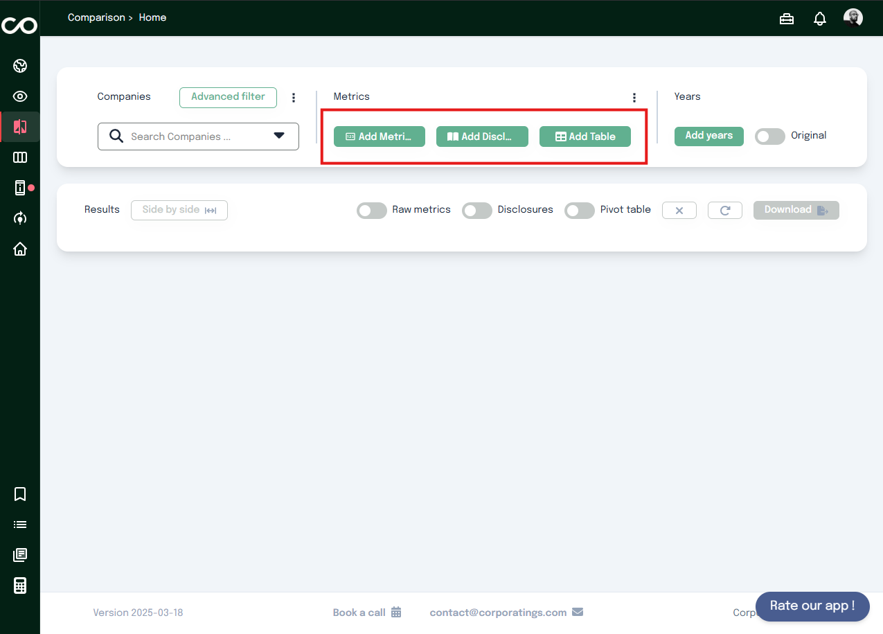 - [Beta] Launch Corporatings Standards metrics. Raw metric switch is available for "as reported data"