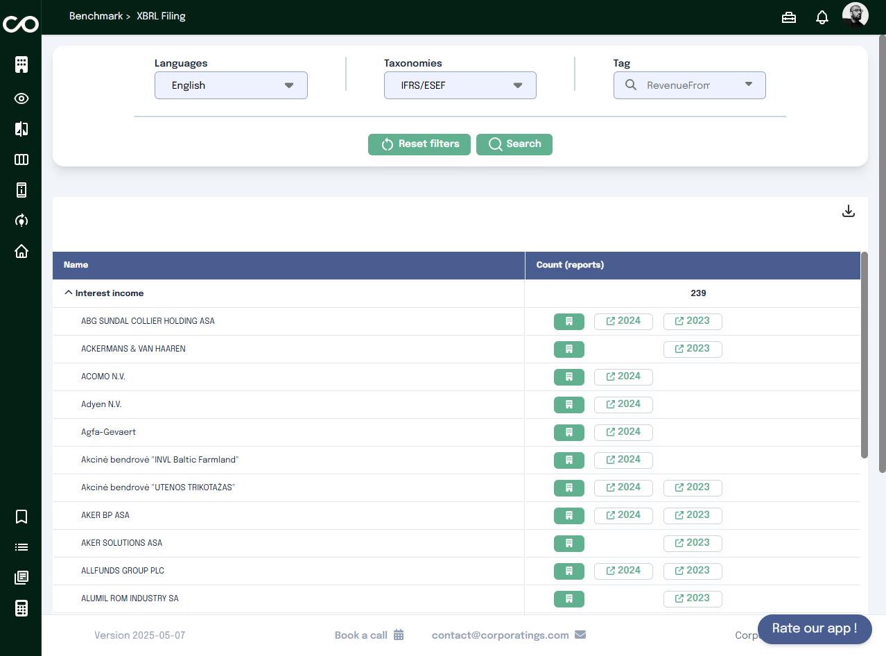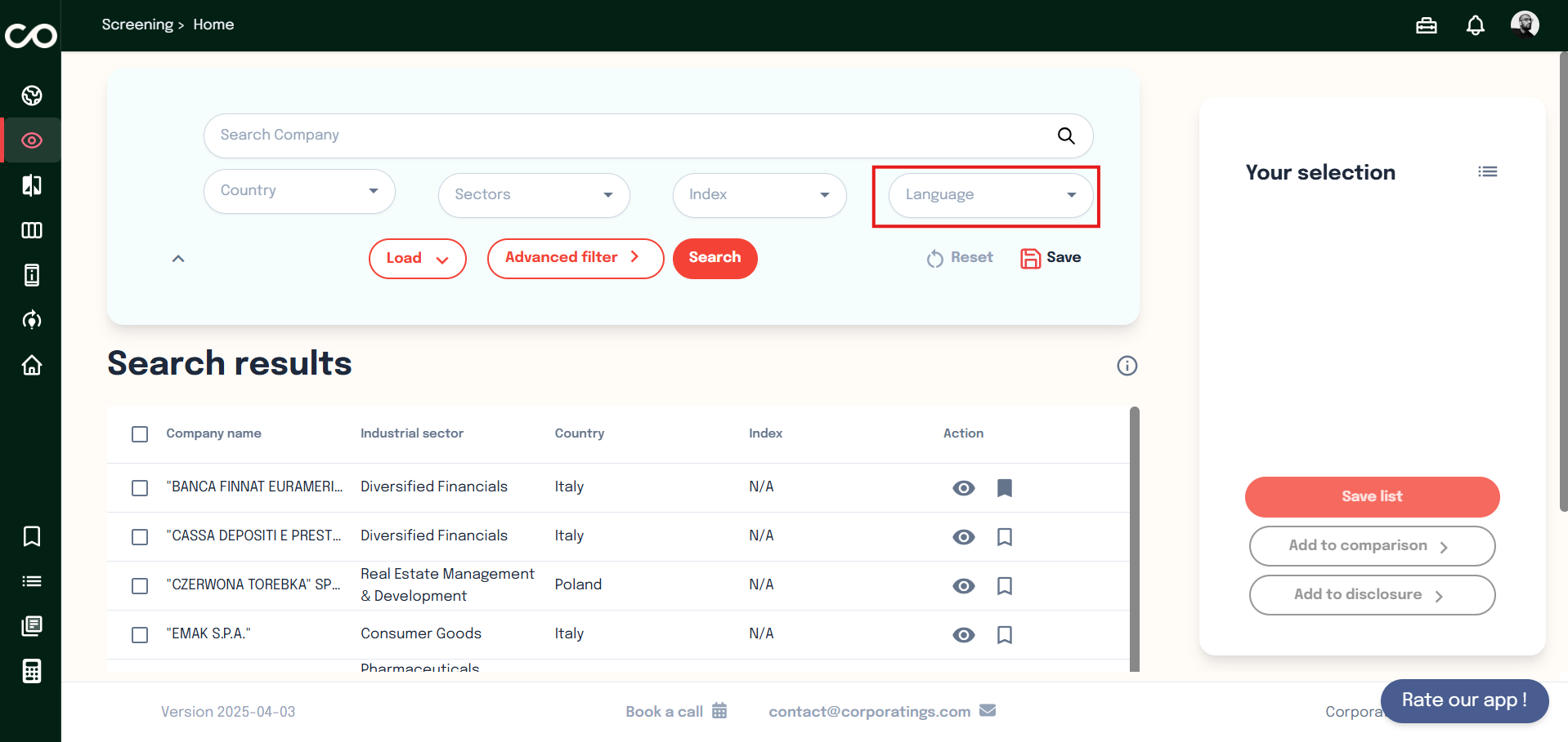 - [New] Added the "Language" filter to screen companies selection based on the language declared in their reports.