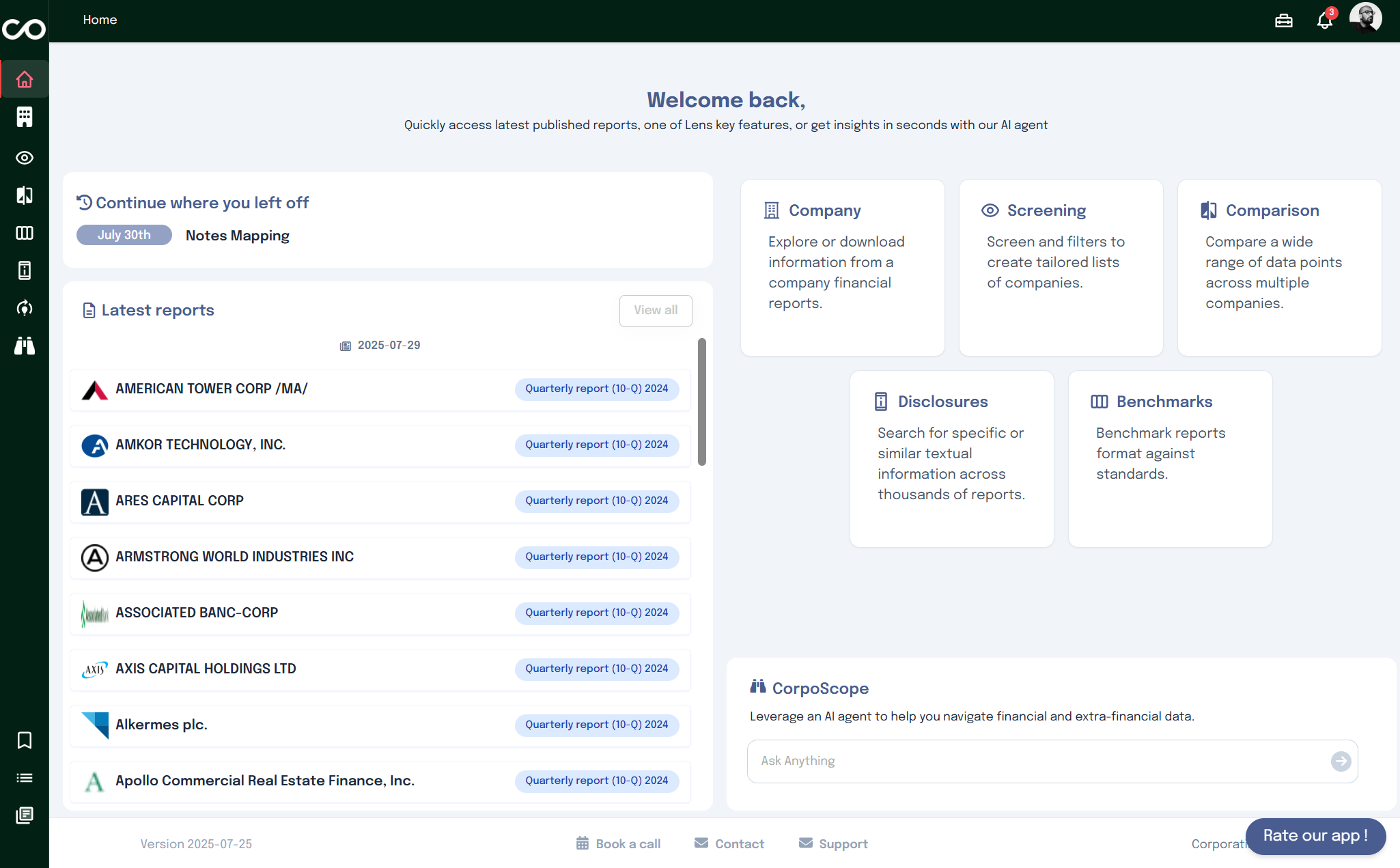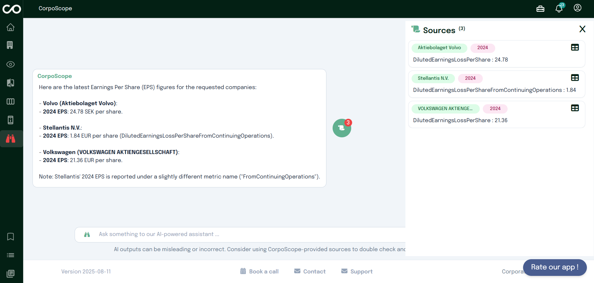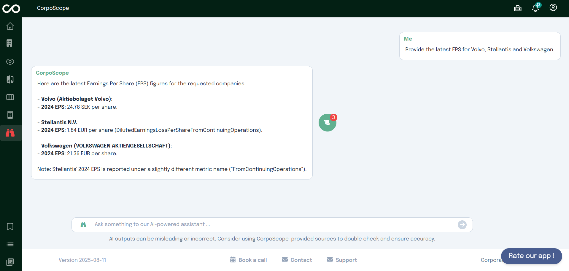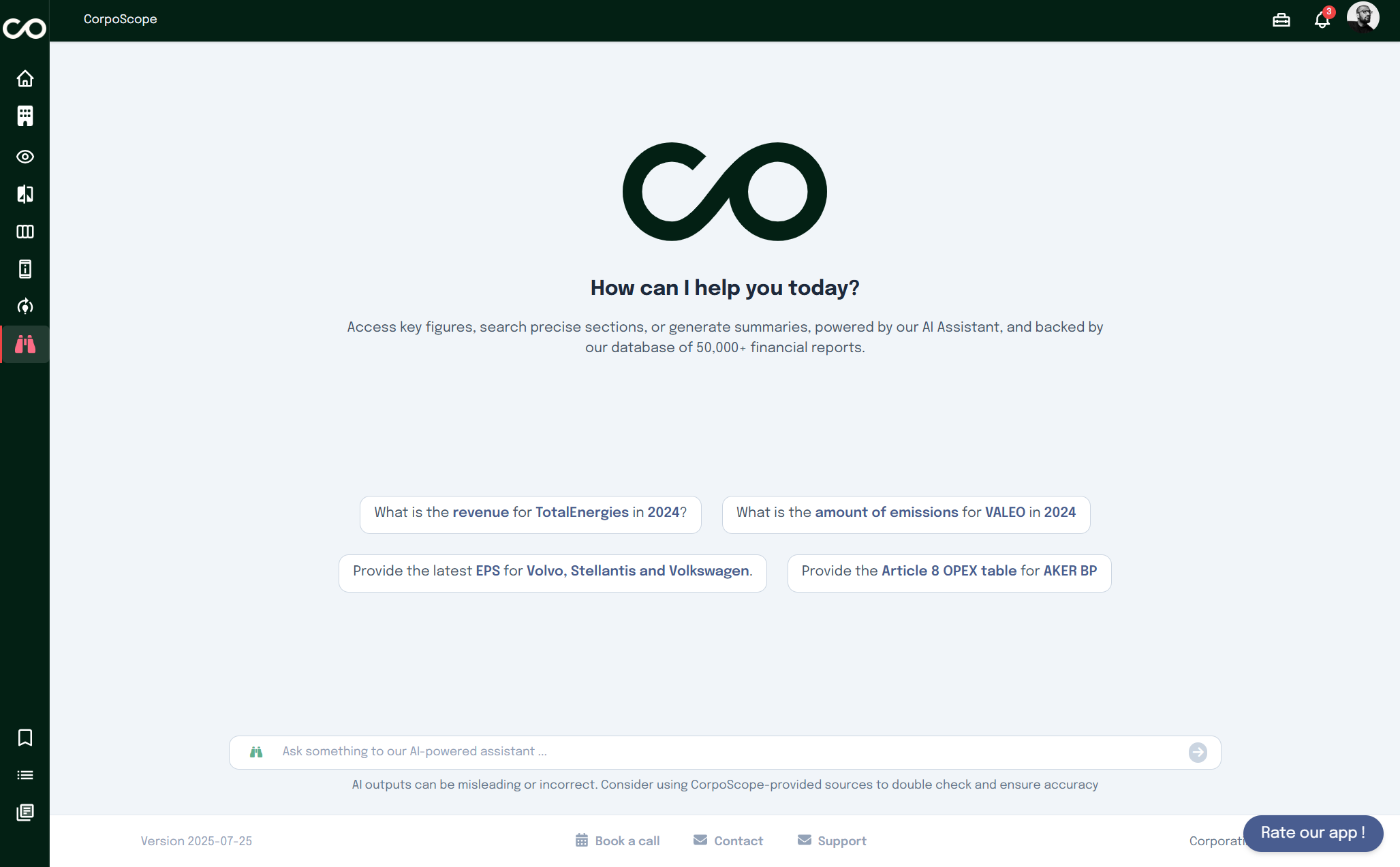 - Introducing CorpoScope, the AI Agent that answers your questions in natural language, strictly based on our database.