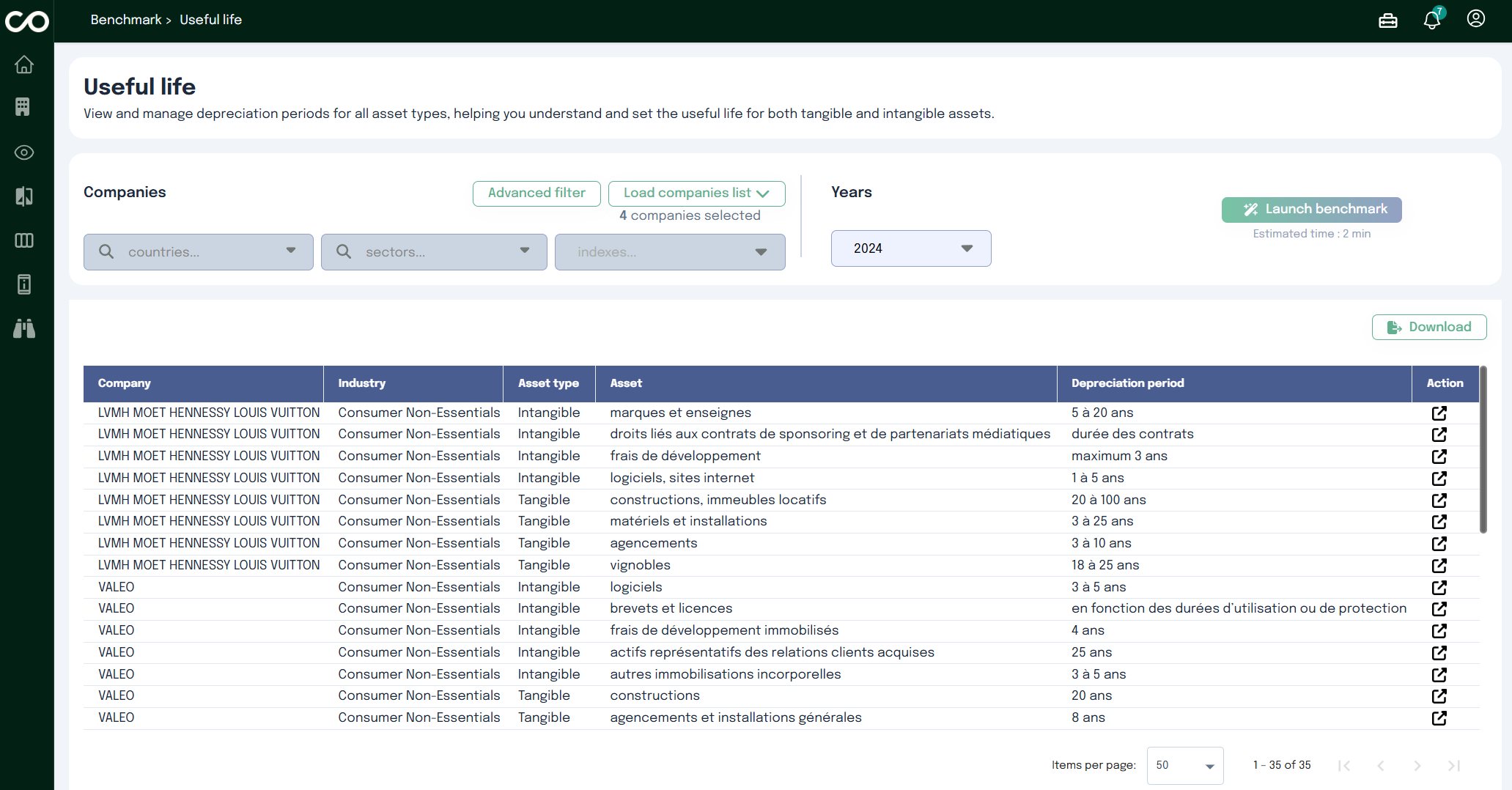- Useful life benchmark is now available, extracting depreciation periods for all asset types, helping you understand and set the useful life for both tangible and intangible assets.