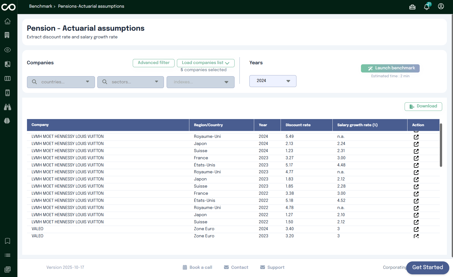 - Pension - Actuarial assumptions benchmark is now available, helping you extract discount rate and salary growth rate