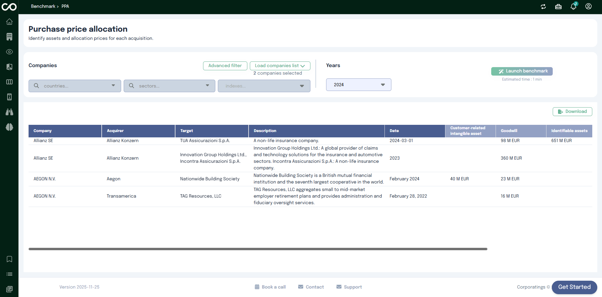 - Goodwill benchmark is now available, collecting goodwill metrics (impairments, ratios, ...), identify the cash-generating unit subject to goodwill impairment and highlight the reasons disclosed for this depreciation.