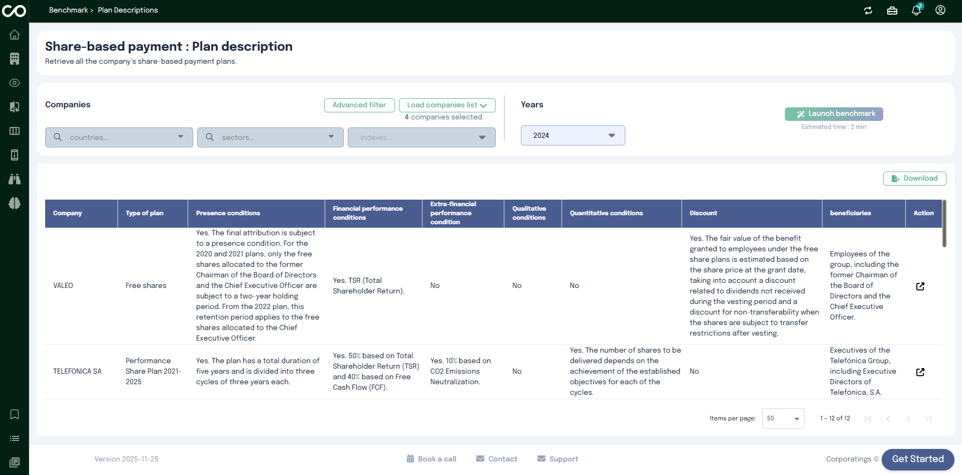 - Share-based payment : Plan description Retrieve all the company’s share-based payment plans.